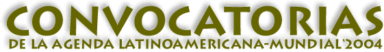 Todas estas convocatorias y sus bases también pueden verse en las diferentes ediciones de papel de la Agenda Latinoamericana-mundial'2004. Vea dónde puede conseguir su Agenda de papel.